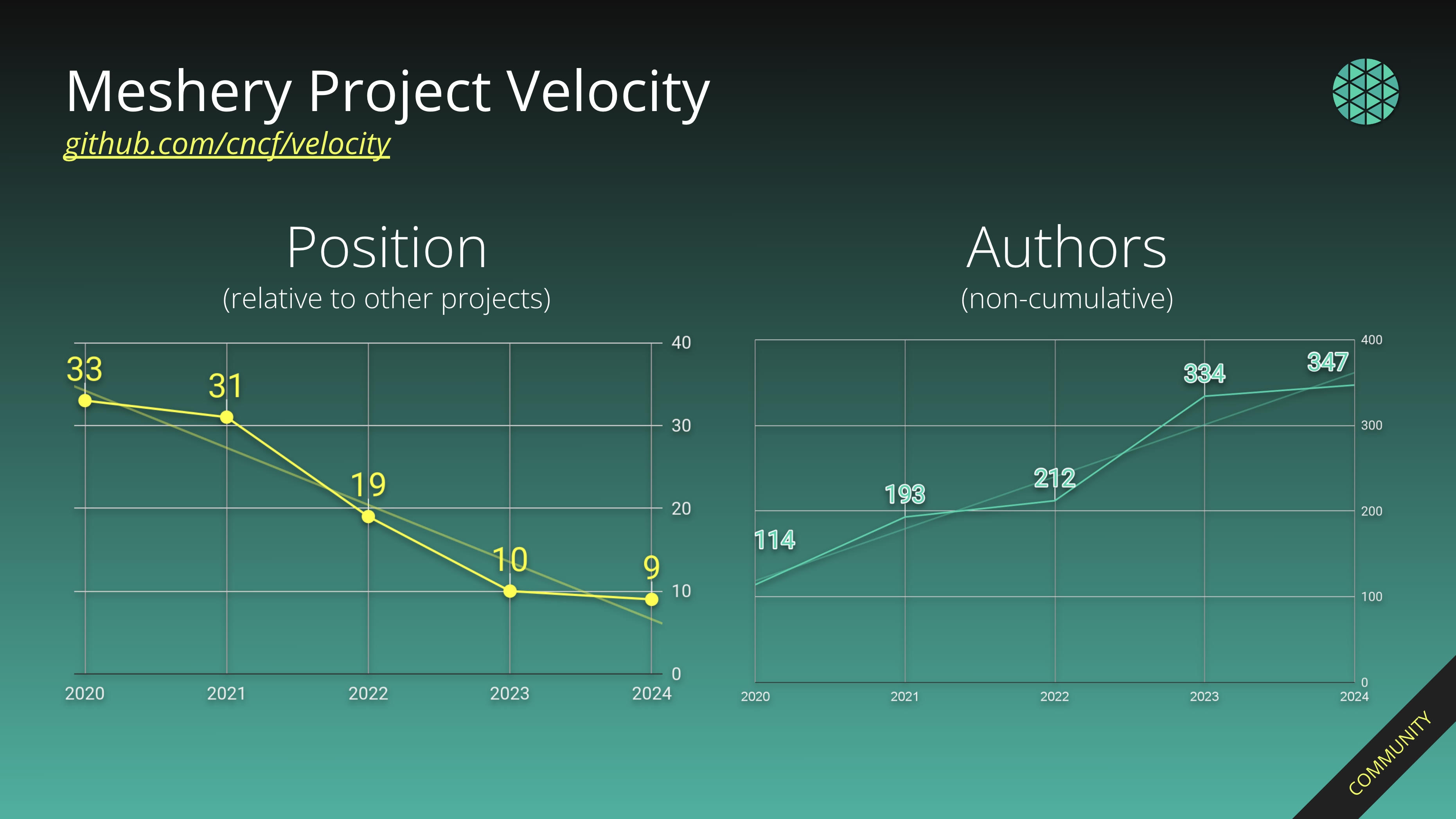 We’re thrilled to share some incredible news that speaks volumes about the power of our community and the impact of Meshery. According to the latest CNCF Project Velocity Report, Meshery has been recognized as the 9th highest velocity project among the 200+ projects within the Cloud Native Computing Foundation!